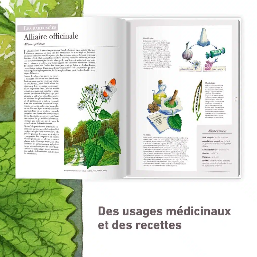Grand format, design épuré et plus de 300 pages : conçu dans la lignée des ouvrages encyclopédiques de la Salamandre (Le grand livre de la nature (2021), Le comportement des oiseaux d’Europe (2018), ce beau livre de référence vous plonge dans le monde passionnant et riche en surprises des plantes sauvages d’Europe. Par des textes précis et pétillants, et des dessins expressifs, il présente 110 espèces herbacées de nos régions, de la haute montagne à la mer, en passant par la forêt et la campagne. Critères d’identification, faits historiques ou mythologiques, usages et histoires cocasses : les auteurs dressent un portrait inédit de fleurs, d’herbes ou de fougères choisies, en dévoilant leurs facettes les plus secrètes ou surprenantes. Qu’elles soient incontournables, comme la gentiane bleue ou l’arnica, ou méconnues, à l’instar de la chélidoine ou de la sanicle, les plantes que vous découvrirez au fil des pages sortent de l’ombre et s’élèvent au rang de vedettes. Chaque description est le fruit d’un grand travail de documentation scientifique, de consignation et de conservation du savoir populaire.
