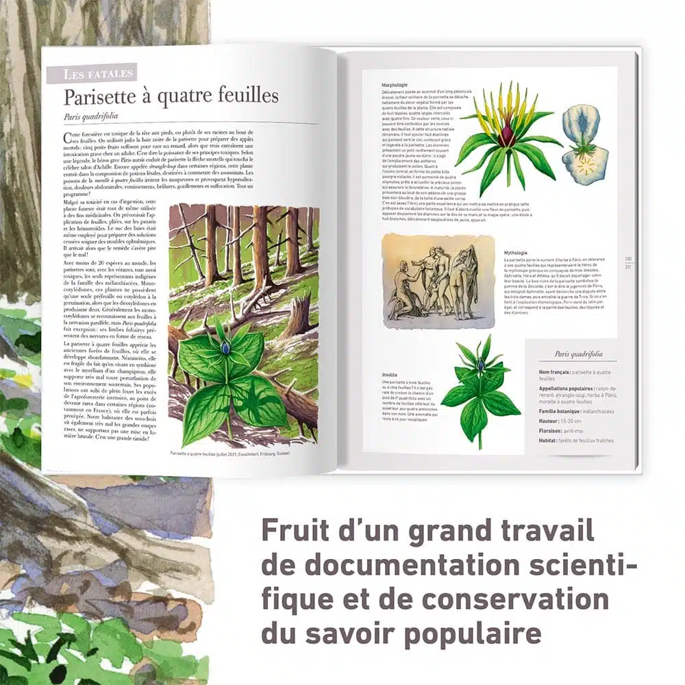 L’ouvrage est intégralement illustré par quelque 900 dessins originaux de Lorenzo Dotti, véritable maestro dans l’art difficile de donner du mouvement à des êtres pourtant immobiles. Forts d’un grand souci du détail et de rigueur scientifique, ses coups de pinceaux contribuent à la compréhension de notions parfois complexes, tout en apportant une touche artistique et esthétique. Le mariage réussi entre des connaissances botaniques accessibles à tout le monde et des illustrations riches permettant au curieux comme au passionné d’appréhender l’évolution des plantes, leurs stratégies de survie et leurs interactions avec l’environnement, en particulier avec les animaux. Ce livre de référence se veut un trait d’union entre le monde scientifique, les savoirs populaires du temps jadis et le grand public. Un ouvrage-patrimoine à dévorer, partager et offrir.