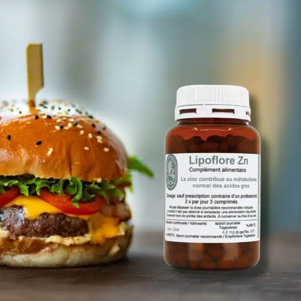 Lipoflore Zn est un complément alimentaire végétal avec zinc. Le zinc contribue au métabolisme normal des acides gras.